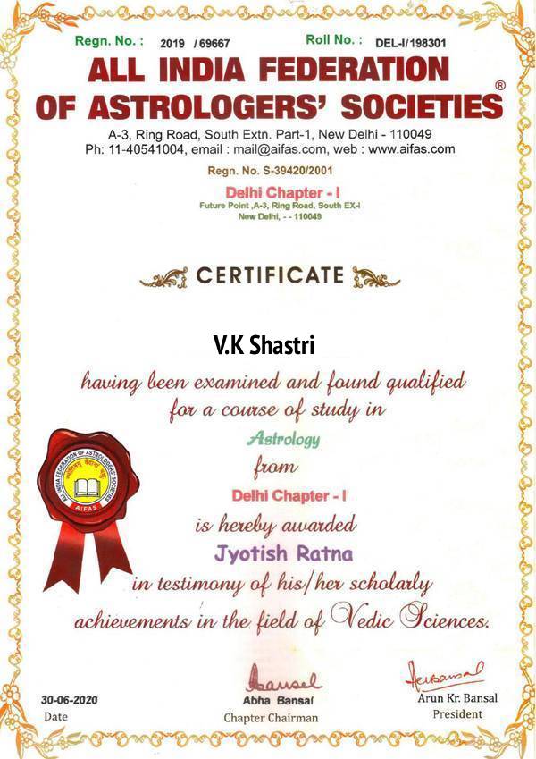 Astrologer V.K Shastri ji helped me figure out how to get out of the legal situation, and for that I am grateful. I was able to obtain the court's ruling in my favour because to his solutions.